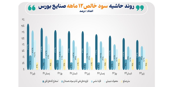روند حاشیه سود خالص ۱۲ ماه منتهی به پایان هر فصل صنایع منتخب بازار سرمایه حاکی از آن است که به جز صنعت فراوردههای نفتی، کک و سوخت هستهای سود باقی صنایع منتخب بازار سرمایه در پاییز امسال در مقایسه با پاییز۱۴۰۳ به دلیل قیمتگذاری دستوری و ناترازی انرژی با کاهش همراه بوده است.