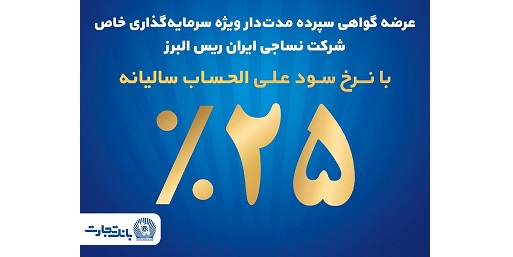 فروش اوراق گواهی سپرده مدتدار ویژه سرمایهگذاری خاص با نرخ سود علیالحساب سالانه 25 درصد برای تامین مالی شرکت «ایران ریس البرز» از روز شنبه 18 بهمنماه در شعب بانک تجارت آغاز شد.