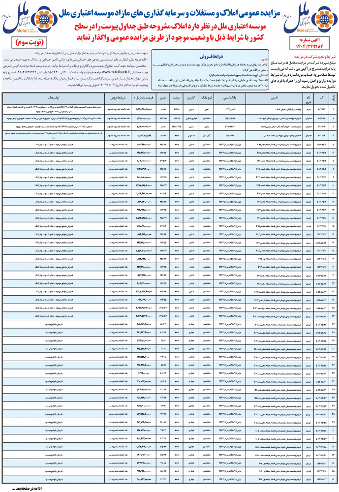 pdf آگهی مزایده عمومی املاک و مستغلات و سرمایه گذاری های مازاد موسسه اعتباری ملل