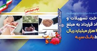 پرداخت تسهیلات و انعقاد قراردادبه مبلغ ۳۴۳ هزار میلیارد ریال توسط بانک سپه