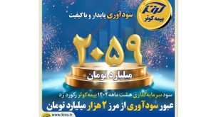 ادامه ...رکورد زنی سود سرمایهگذاری 8 ماهه بیمه کوثر با عبوراز مرز ۲هزار میلیارد تومان