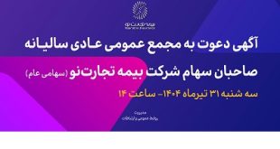 بر اساس اعلام هیئت مدیره شرکت بیمه تجارت نو مجمع عمومی عادی سالیانه صاحبان سهام این شرکت ساعت ۱۴ روز سهشنبه مورخ ۱۴۰۴/۰۴/۳۱ برگزار می شود.