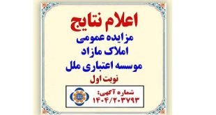 ادامه ...اعلام نتایج مزایده املاک ۲۴ اردیبهشت ماه موسسه اعتباری ملل