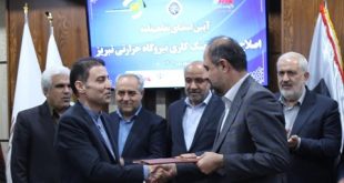 آیین امضای تفاهمنامه اصلاح سیستم خنککاری نیروگاه تبریز میان شرکت نیروآتیه صبا و شرکت توسعه یک گروه مپنا با حضور" احمد میدری"، وزیرکار ، "عباس علیآبادی" وزیر نیرو،" بهرام سرمست"، استاندار آذربایجان شرقی و جمعی از مسئولین مرتبط برگزار شد.