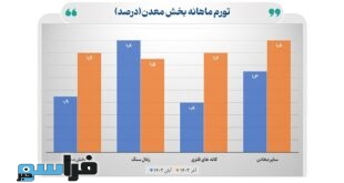 ادامه ...افزایش ۱.۶ درصدی تورم ماهانه تولید در بخش معدن
