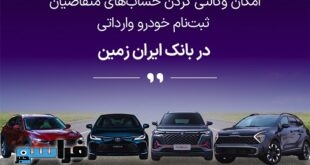 ادامه ...آمادگی بانک ایران زمین برای معرفی حساب وکالتی جهت خرید خودروهای وارداتی