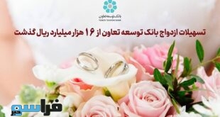 ادامه ...تسهیلات ازدواج بانک توسعه تعاون از ۱۶ هزار میلیارد ریال گذشت