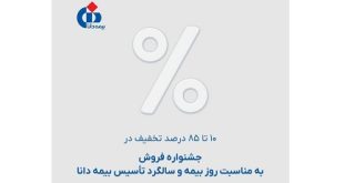 ادامه ...۱۰ تا ۸۵ درصد تخفیف در جشنواره فروش به مناسبت روز بیمه و سالگرد تأسیس بیمه دانا