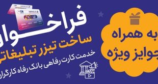 ادامه ...جشنواره بانک رفاه کارگران برای ساخت تیزر تبلیغاتی خدمت کارت رفاهی