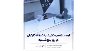 ادامه ...اعلام فهرست شعب کشیک بانک رفاه کارگران در روز پنجشنبه ۲۶ تیرماه