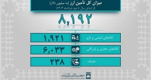 ز ابتدای سال ۱۴۰۴ تا دوم خردادماه، ۸ میلیارد و ۱۹۲ میلیون دلار از سوی بانک مرکزی برای واردات کالای اساسی و دارو، صنایع و نیازهای خدماتی تامین ارز شده است.