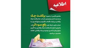 ادامه ...ابلاغ بخشنامه اصلاح رویه و مبلغ رفع سوء اثر چک برگشتی به شعب پست بانک ایران