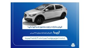 طرح فروش مشارکت در تولید خودروی جدید «آریا» از روز پنجشنبه ۹ بهمنماه آغاز میشود.