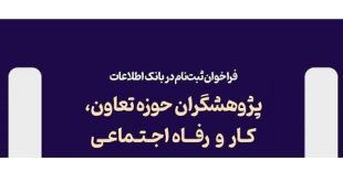 ادامه ...فراخوان ثبتنام بانک اطلاعات پژوهشگران حوزه تعاون، کار و رفاه اجتماعی
