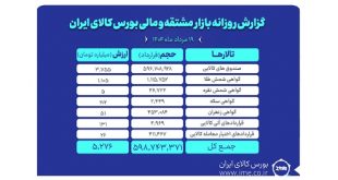ادامه ...ارزش معاملات روز گذشته بازار مشتقه و مالی بورس کالا ۵.۲ همت شد