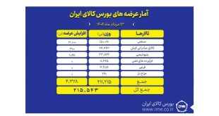 ادامه ...امروز ۲۱۵ هزار تن انواع محصول روی میز فروش بورس کالا می رود