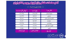 ادامه ...هفته گذشته یک میلیون و ۸۳۸ هزار تن محصول در بورس کالا معامله شد