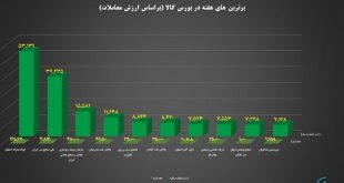 ادامه ...از نظر ارزش معاملات؛ ۱۰ شرکت برتر بورس کالا معرفی شدند