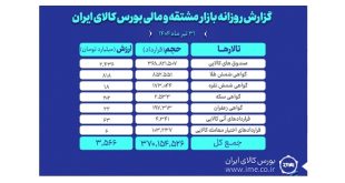 روز گذشته در بازار مشتقه و مالی بورس کالای ایران در مجموع بیش از ۳۷۰ میلیون و ۱۵۴ هزار قرارداد به ارزش ۳ هزار و ۵۶۶ میلیارد تومان منعقد شد.