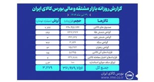 ادامه ...در ۲۸ تیرماه؛ ارزش معاملات بازار مشتقه و مالی بورس کالا به ۳.۲ همت رسید
