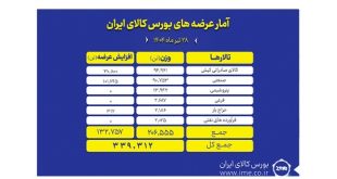 ادامه ...عرضه ۳۳۹ هزار تن محصول در بورس کالای ایران