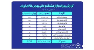 ادامه ...ارزش معاملات ۲۳ تیرماه بازار مشتقه و مالی بورس کالا به ۸.۲ همت رسید