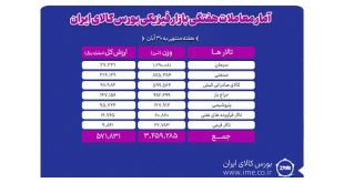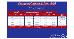 ادامه ...ثبت معامله ۳ میلیون و ۴۵۹هزار تن محصول هفته گذشته در بورس کالا