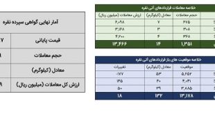 در روز ۴ خرداد ماه در مجموع حدود ۱۰۵ کیلوگرم شمش نقره در بازار گواهی سپرده و قرارداد آتی مورد معامله قرار گرفت.