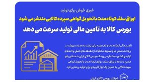 بورس کالای ایران از اوراق سلف موازی کوتاه مدت با تحویل گواهی سپرده کالایی به عنوان یک ابزار کاربردی برای تولید رونمایی کرد.