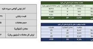 در روز ۳۰ اردیبهشت ماه در مجموع حدود ۴۳ کیلوگرم شمش نقره در بازار گواهی سپرده و قرارداد آتی مورد معامله قرار گرفت.