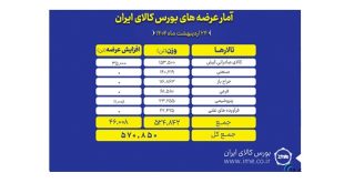تالارهای بورس کالای ایران در روز چهارشنبه ۲۴ اردیبهشتماه میزبان معامله ۲۱۳ هزار و ۷۵۲ تن محصول بود.