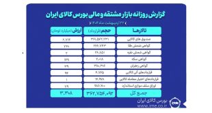 ادامه ...روز گذشته؛ ارزش معاملات بازار مشتقه و مالی بورس کالا به ۳.۳ همت رسید