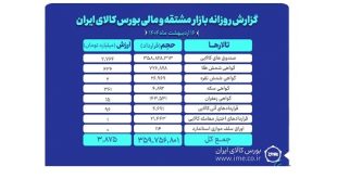 ادامه ...در معاملات روز گذشته؛ ارزش بازار مشتقه و مالی بورس کالا به ۳.۸ همت رسید
