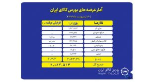 تالارهای بورس کالای ایران امروز سه شنبه ۱۶ اردیبهشت ماه میزبان عرضه ۲ میلیون و ۸۴ هزار و ۵۱۳ تن انواع محصول است.
