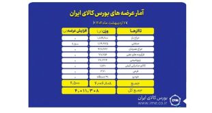 تالارهای بورس کالای ایران در روز شنبه ۶ اردیبهشت ماه میزبان ۳۲ هزار و ۳۸۲ تن محصول بود.