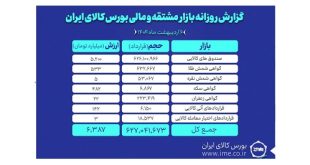 ادامه ...۶ اردیبهشت ماه رقم خورد؛ معامله ۳۲ هزار تن محصول در بورس کالای ایران