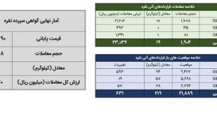 در روز ۱۹ فروردین در مجموع ۷۲ کیلوگرم شمش نقره در بورس کالای ایران معامله شد.