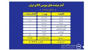 تالارهای بورس کالای ایران امروز یکشنبه ۲۵ آبان ماه میزبان عرضه ۲ میلیون و ۷۳۷ هزار و ۸۴ تن محصول است.