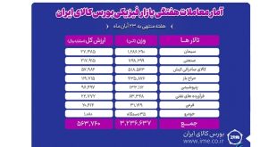 ادامه ...معامله ۳ میلیون و ۲۳۷ هزار تن محصول طی هفته گذشته در بورس کالا