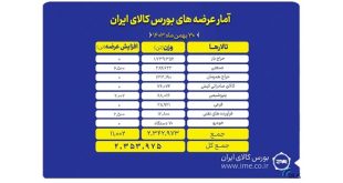 ادامه ...بورس کالای ایران میزبان عرضه ۲ میلیون و ۳۵۳ تن محصول