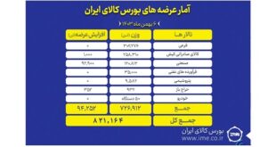 ادامه ...امروز۸۲۱ هزار تن محصول در بورس کالا عرضه می شود