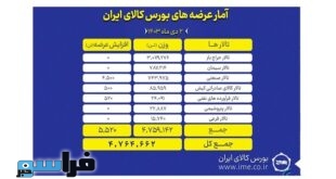 ادامه ...امروز در بورس کالا؛ ۴ میلیون و ۷۶۴ هزار تن محصول روی تابلو می رود