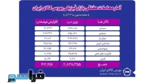 تالارهای بورس کالای ایران در اولین روز هفته ۲۴ آذرماه میزبان معامله ۸۷۳هزار و ۴۴۴ تن محصول بود.