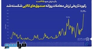 امروز شنبه ۲۴ آذرماه ۱۴۰۳ با ثبت ارزش حدود ۴.۵ هزار میلیارد تومان، رکورد تاریخی ارزش معاملات روزانه صندوق های کالایی در بورس کالای ایران شکسته شد.