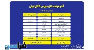تالارهای بورس کالای ایران در روز دوشنبه ۱۹ آذر ماه میزبان عرضه یک میلیون و ۵۴ هزار و ۶۶۸ تن انواع کالا و محصول است.