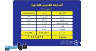 ادامه ...عرضه ۳ میلیون و ۷۲۶ هزار تن محصول در بورس کالا