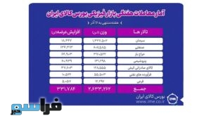 ادامه ...معامله ۲ میلیون و ۶۳۳ هزار تن محصول هفته گذشته در بورس کالا
