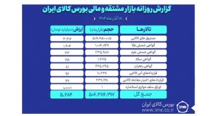 ادامه ...ارزش معاملات روز گذشته بازار مشتقه و مالی بورس کالا ۵.۲ همت شد