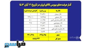 تالارهای بورس کالای ایران در روز یکشنبه ۲۰ آبان ماه میزبان معامله ۹۸۴هزار و ۸۰۸ تن انواع کالا و محصول بود.