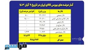تالارهای بورس کالای ایران در روز سه شنبه ۸ آبان ماه میزبان معامله ۴۲۶هزار و ۳۷۰ تن انواع کالا و محصول بود.